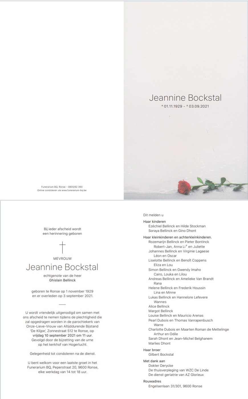 Jeannine Bockstal overlijden