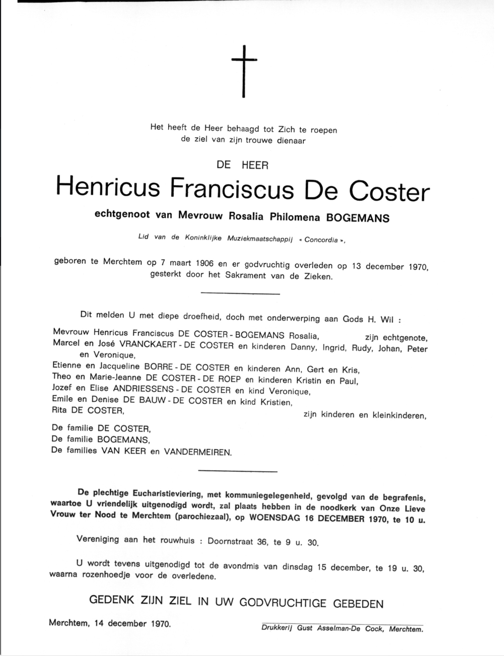 Henricus Franciscus De Coster begraven