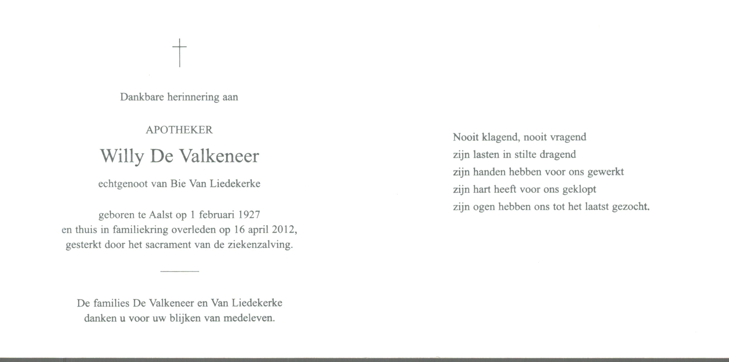Willy De Valkeneer overlijden
