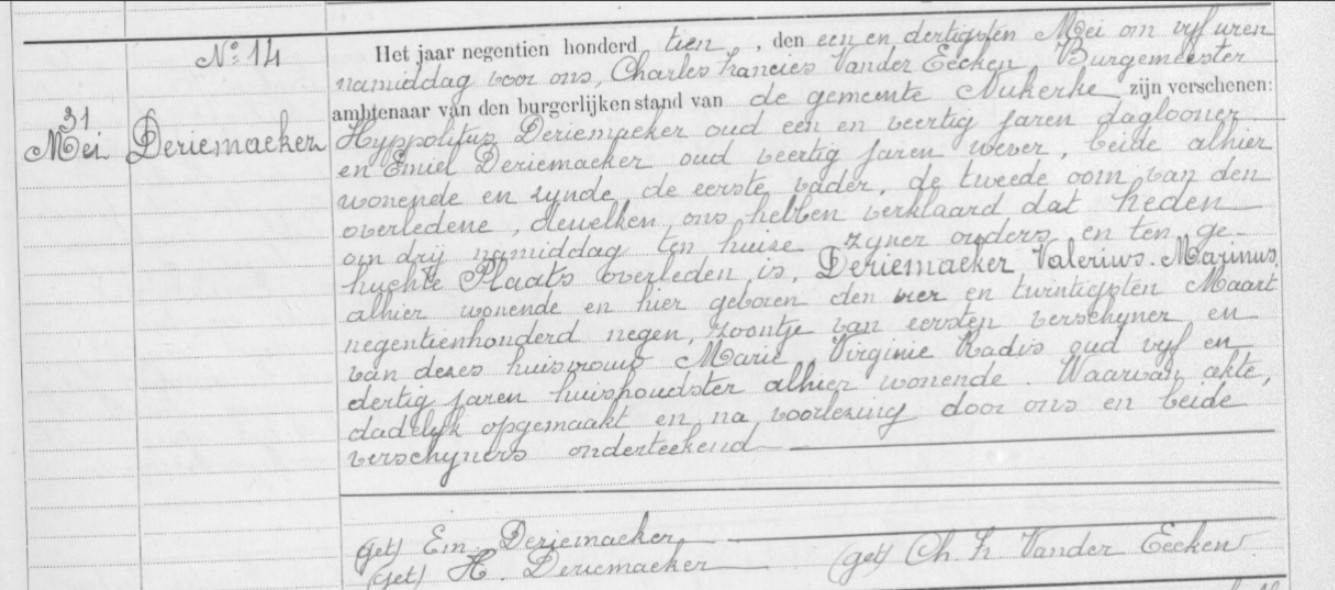 Valerius Marinus Deriemaeker overlijden
