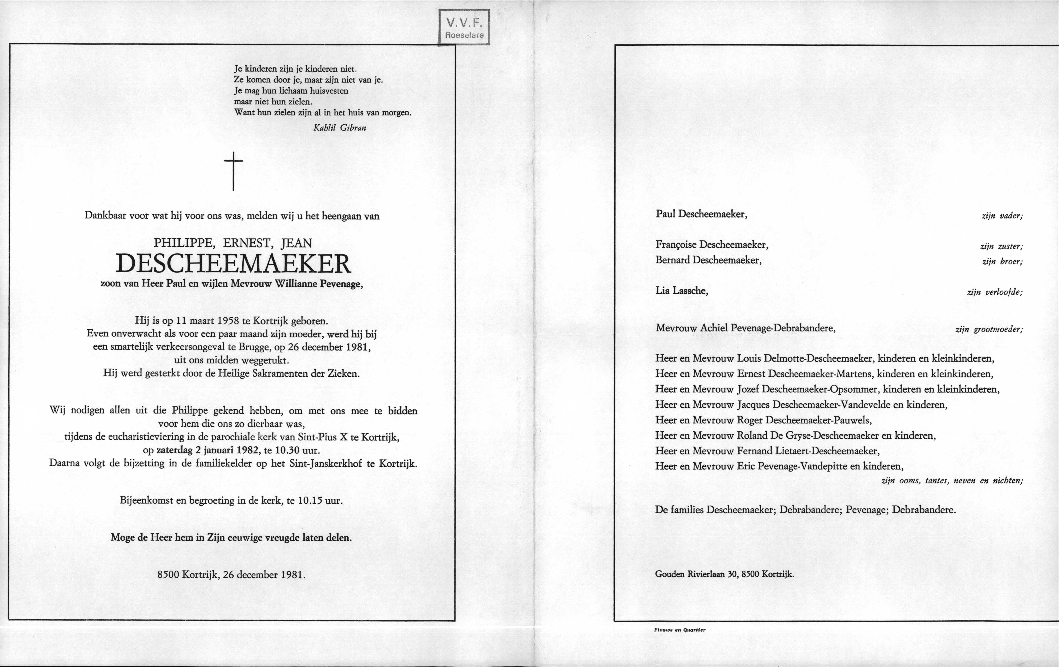 Philippe Descheemaeker overlijden
