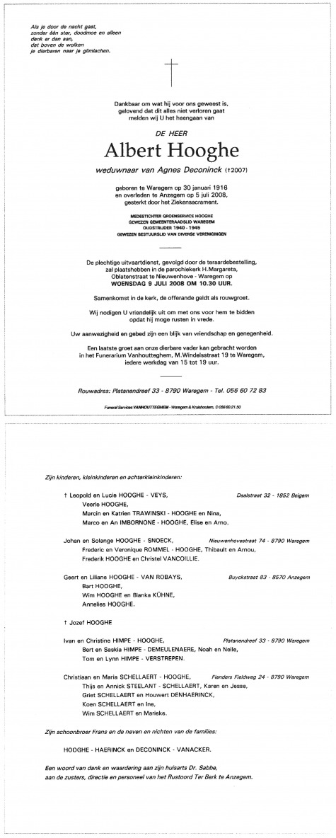 Albert Hooghe overlijden
