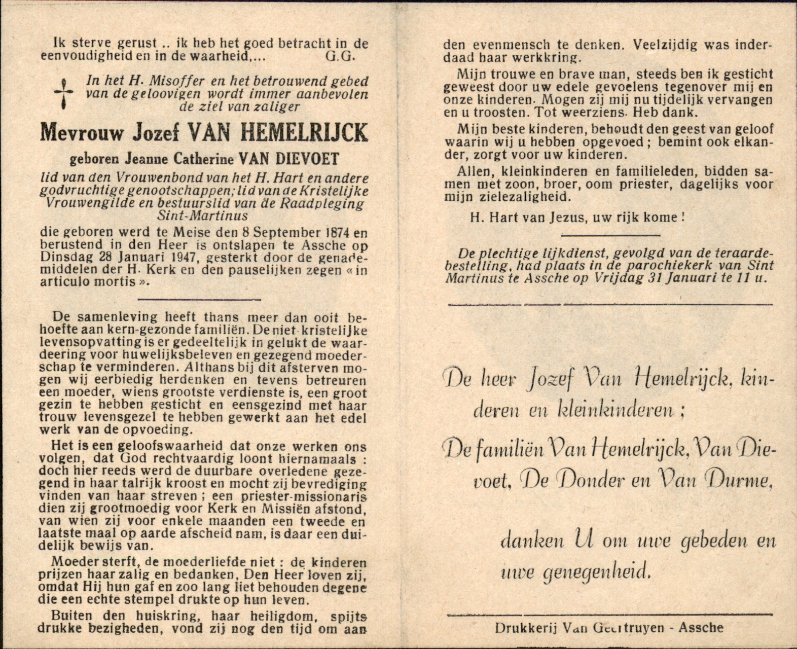 Joanna Catharina Van Dievoet overlijden