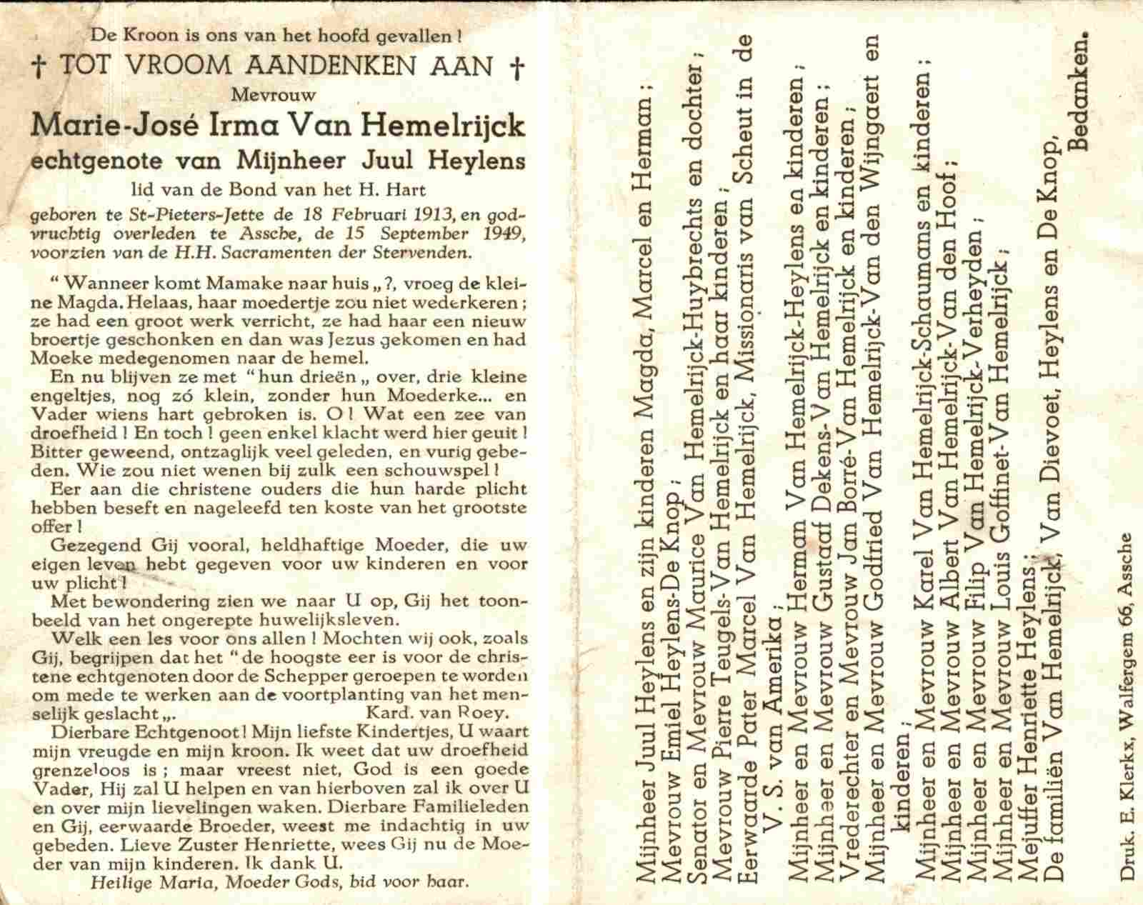 Irma Van Hemelrijck overlijden