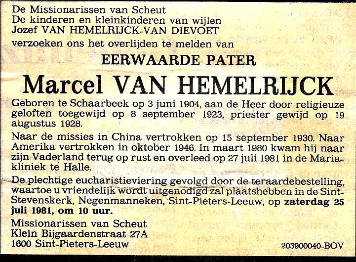 Marcel Van Hemelrijck overlijden