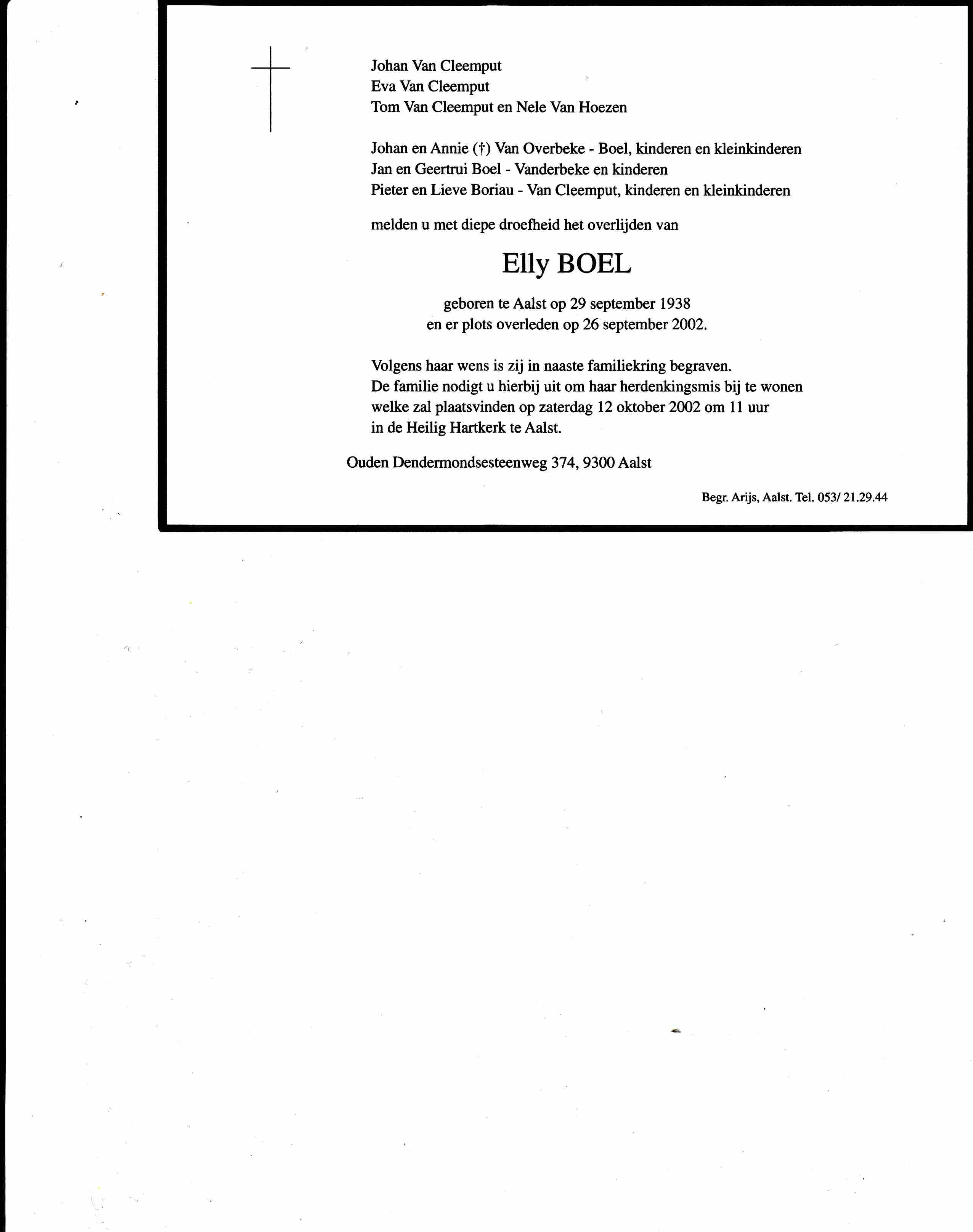 Elly Boel overlijden