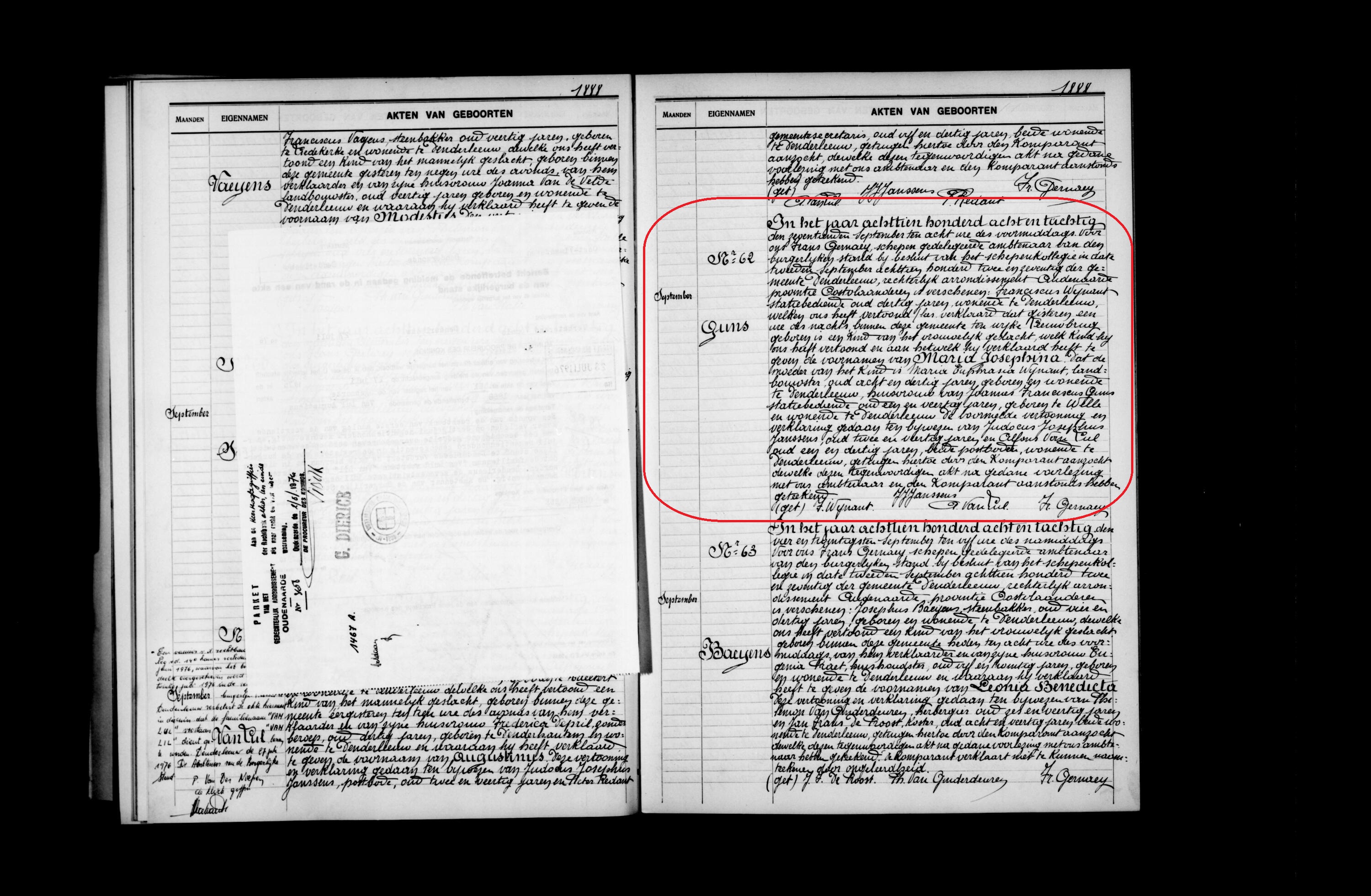 Maria Josephina Guns geboorte