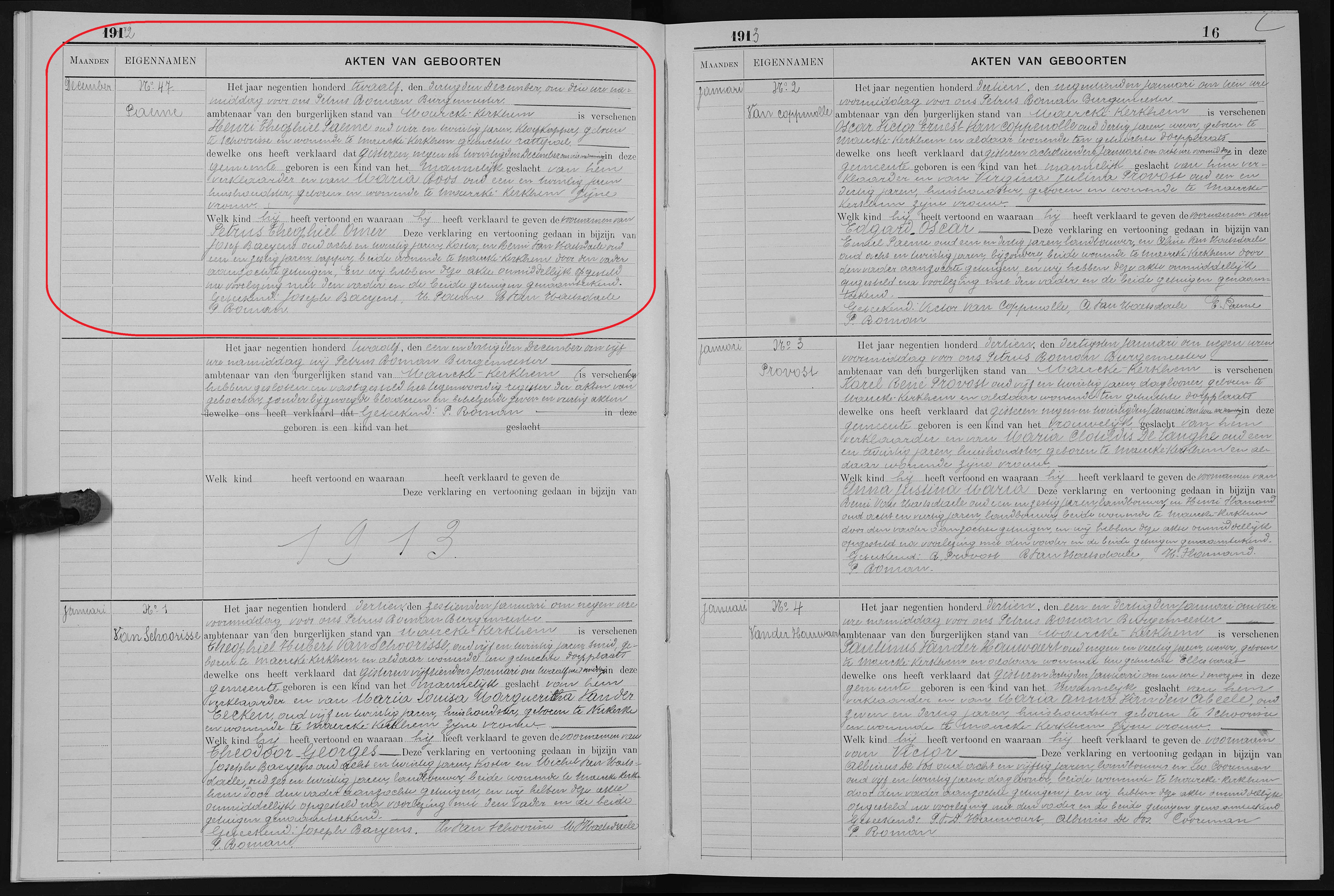 Bron : "Maarke-Kerkem, East Flanders, Belgium Records," images, FamilySearch (https://www.familysearch.org/ark:/61903/3:1:3QHN-1Q5S-C94H : May 7, 2024), image 18 of 172; Griffie van de rechtbank van eerste aanleg te Oudegaarde.