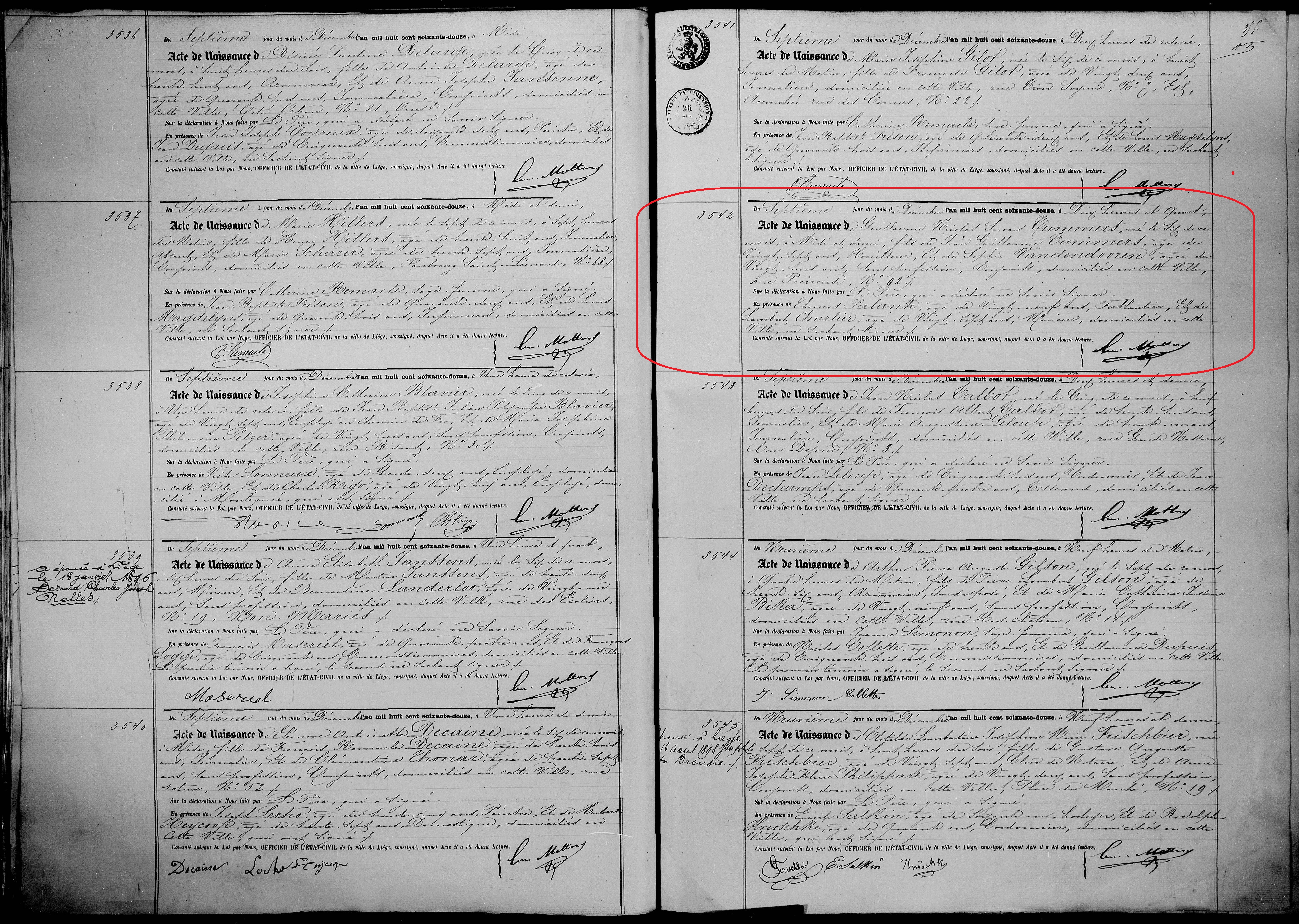 Guillaume Nicolas Servais Tummers geboorte