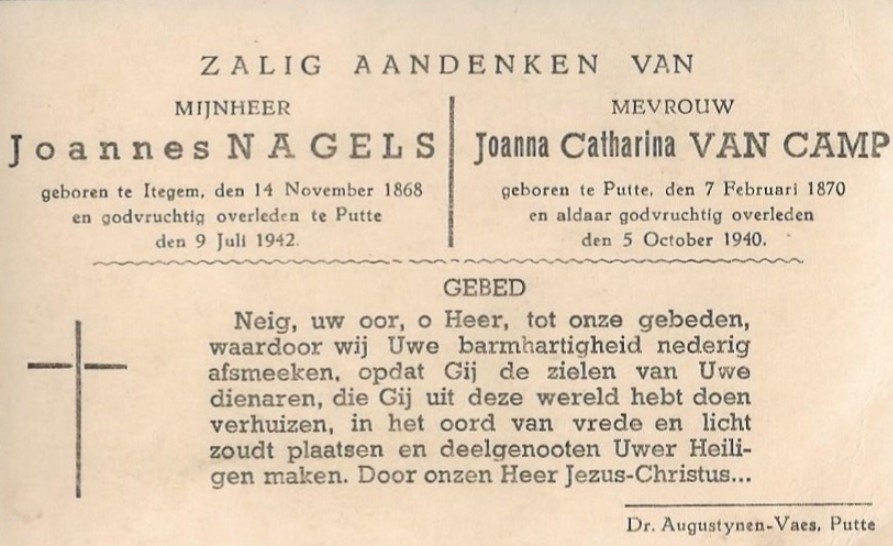 Joanna Catharina Van Camp overlijden