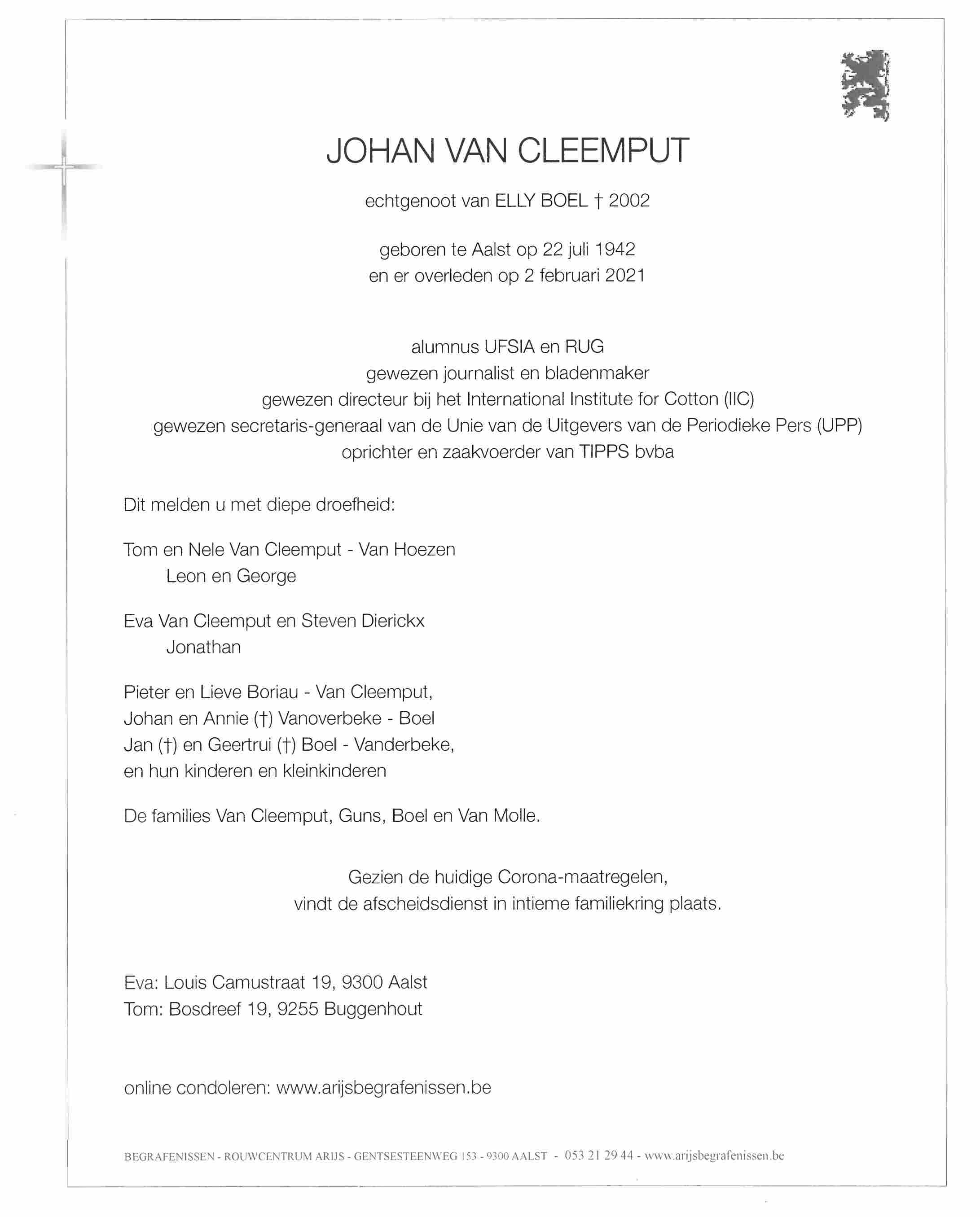 Johan Van Cleemput overlijden