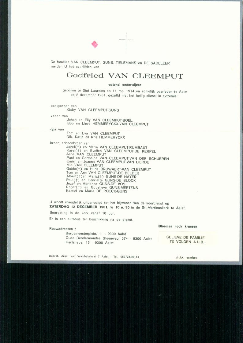 Godfried Van Cleemput overlijden
