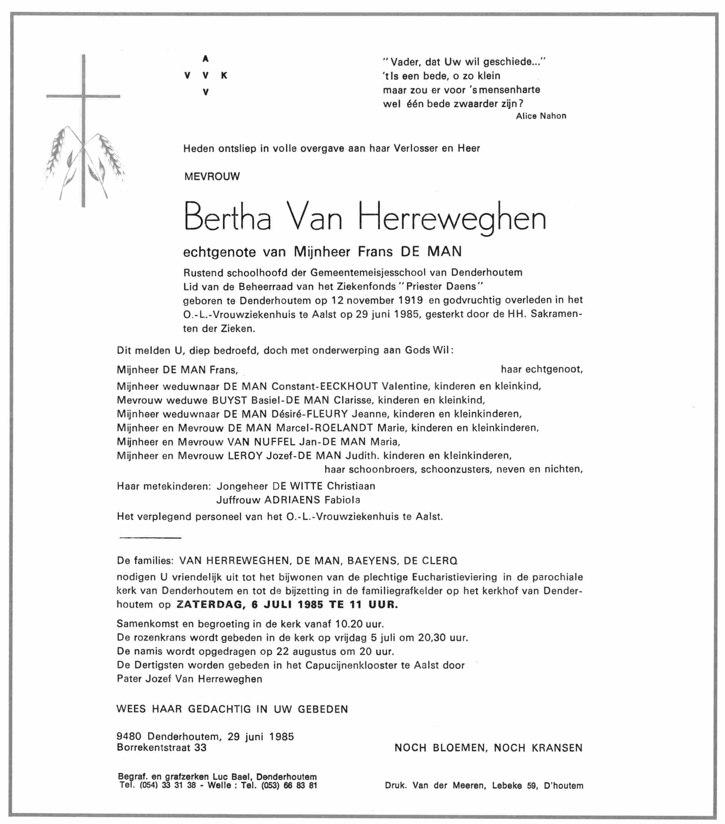 Bertha Clementia Van Herreweghen begraven