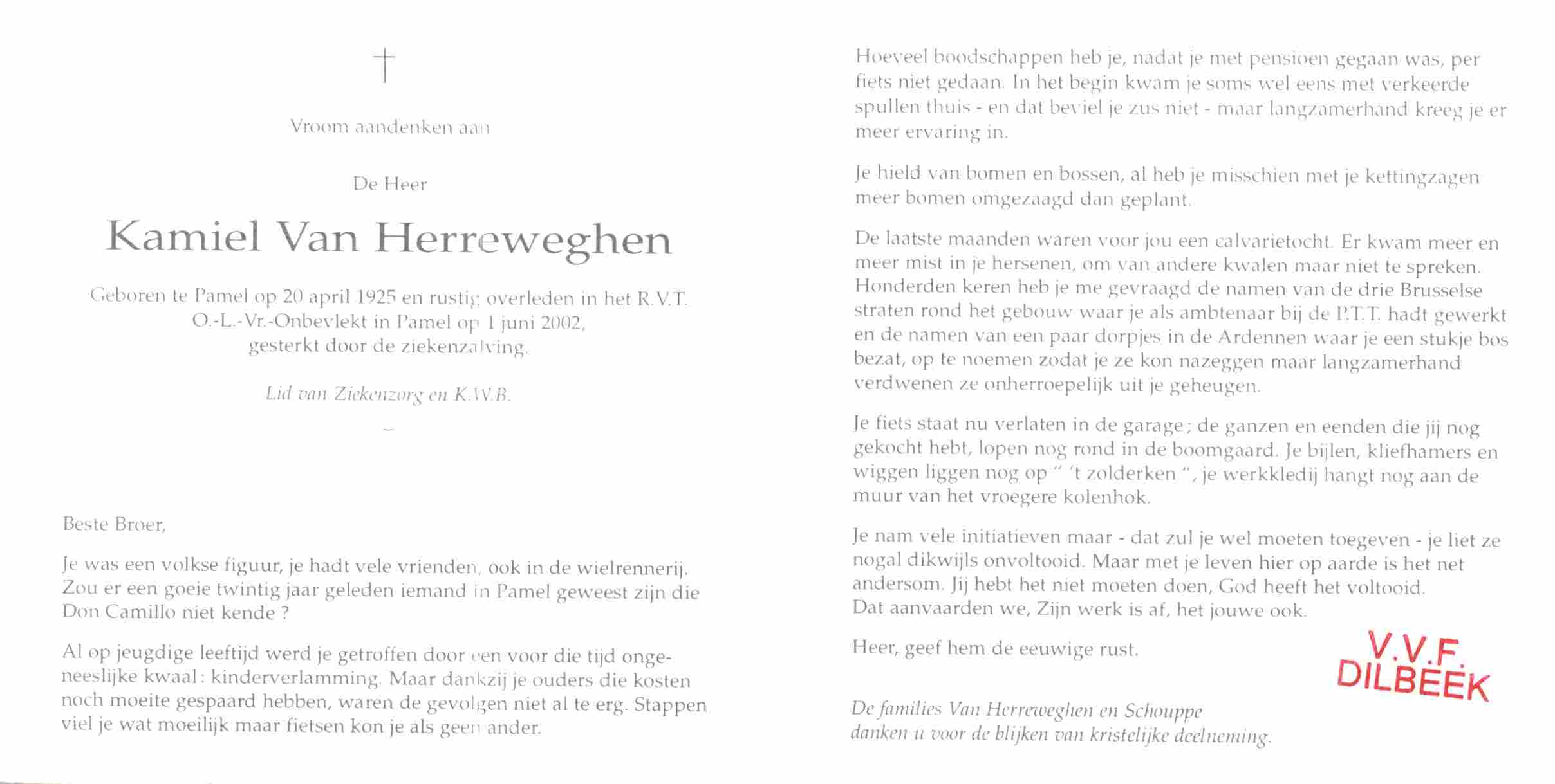 August Kamiel Van Herreweghen begraven