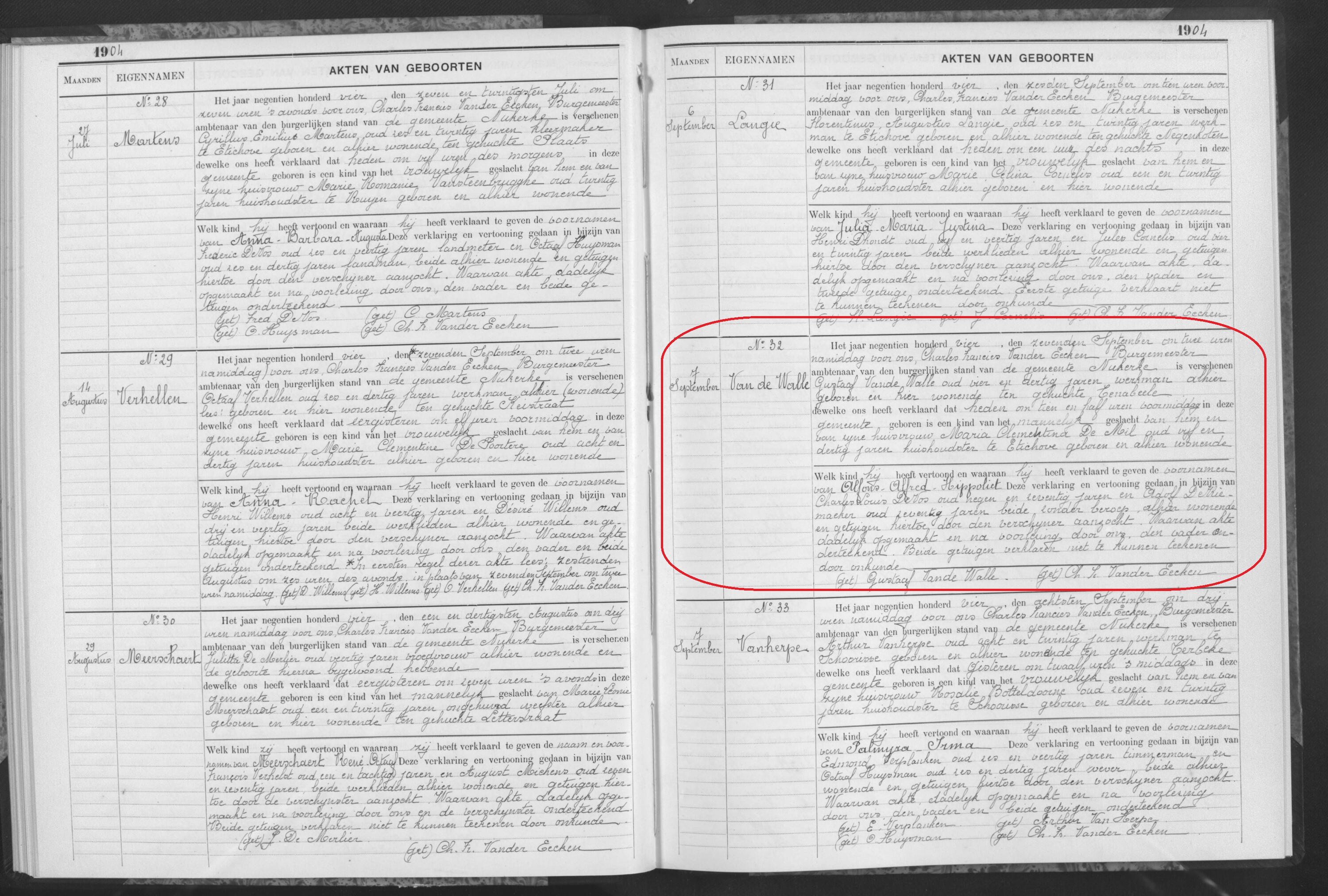 Alfons Alfred Hippoliet Vande Walle geboorte