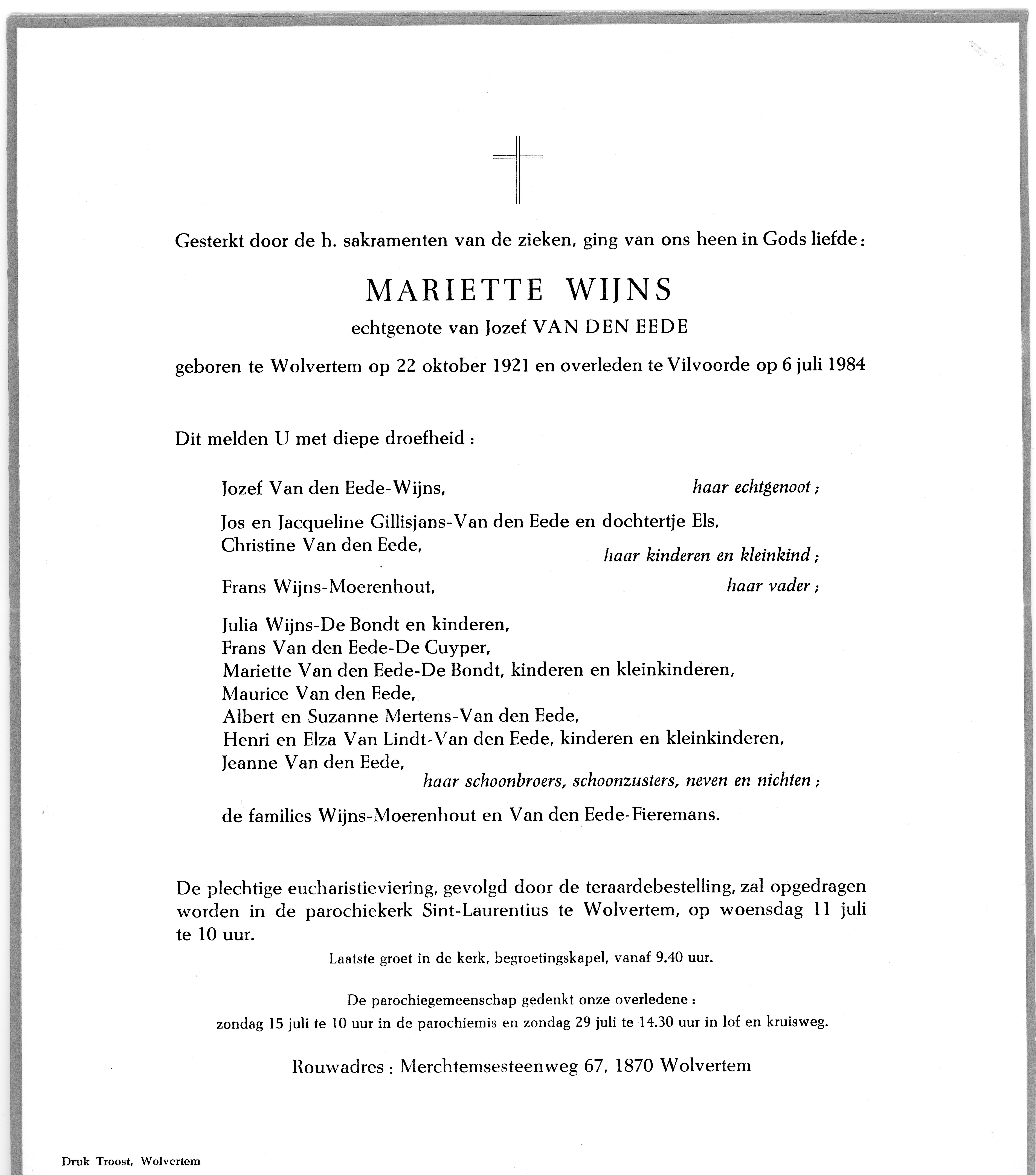 Mariette Wijns overlijden