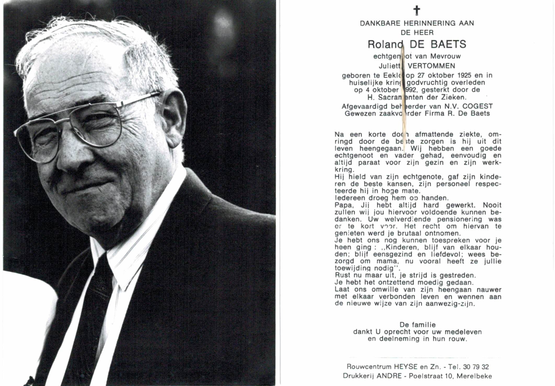 Roland De Baets overlijden