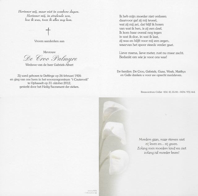 Palmyre De Croo begraven