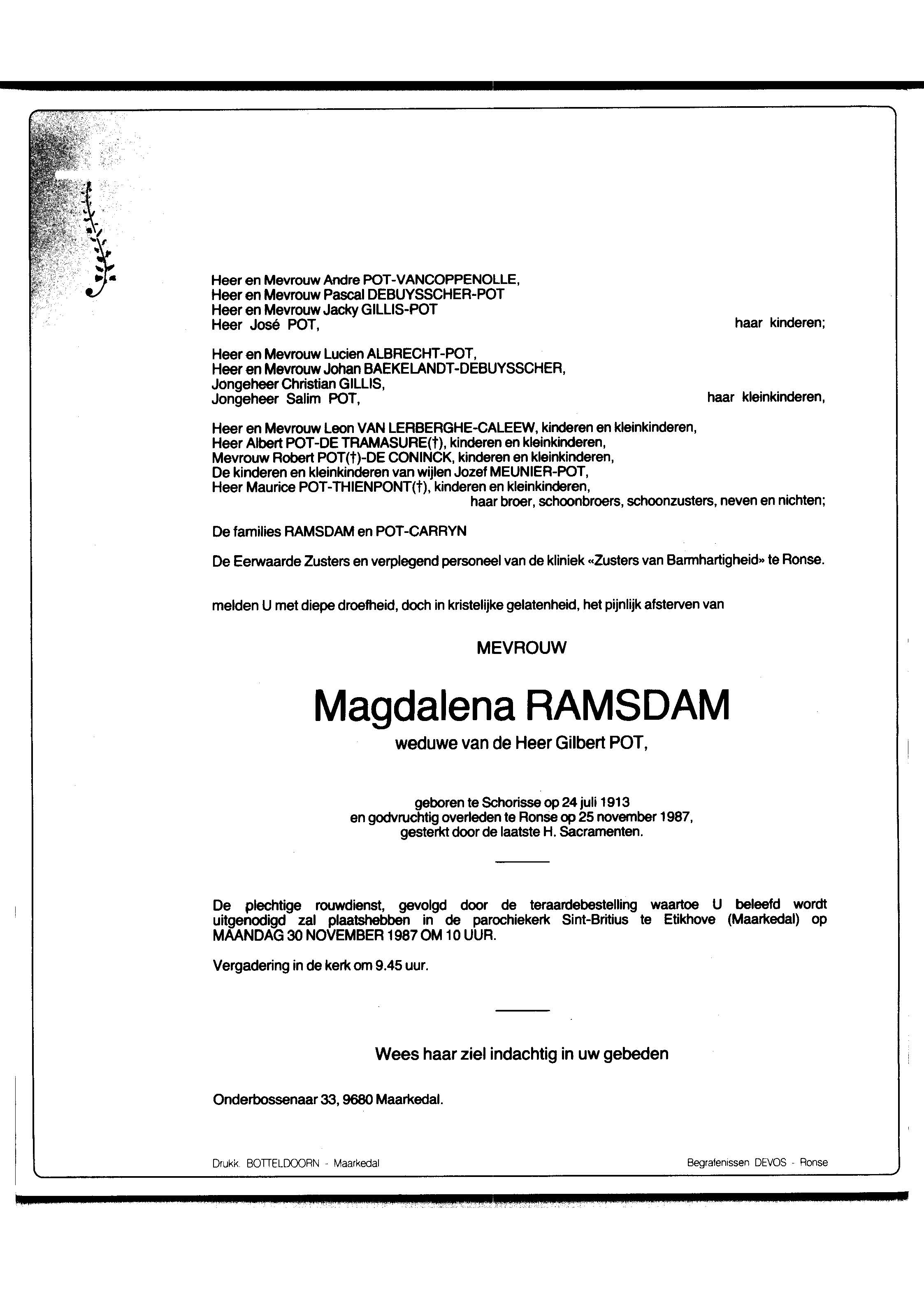 Magdalena Bertha Ramsdam overlijden