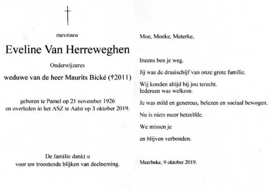 Eveline Van Herreweghen begraven
