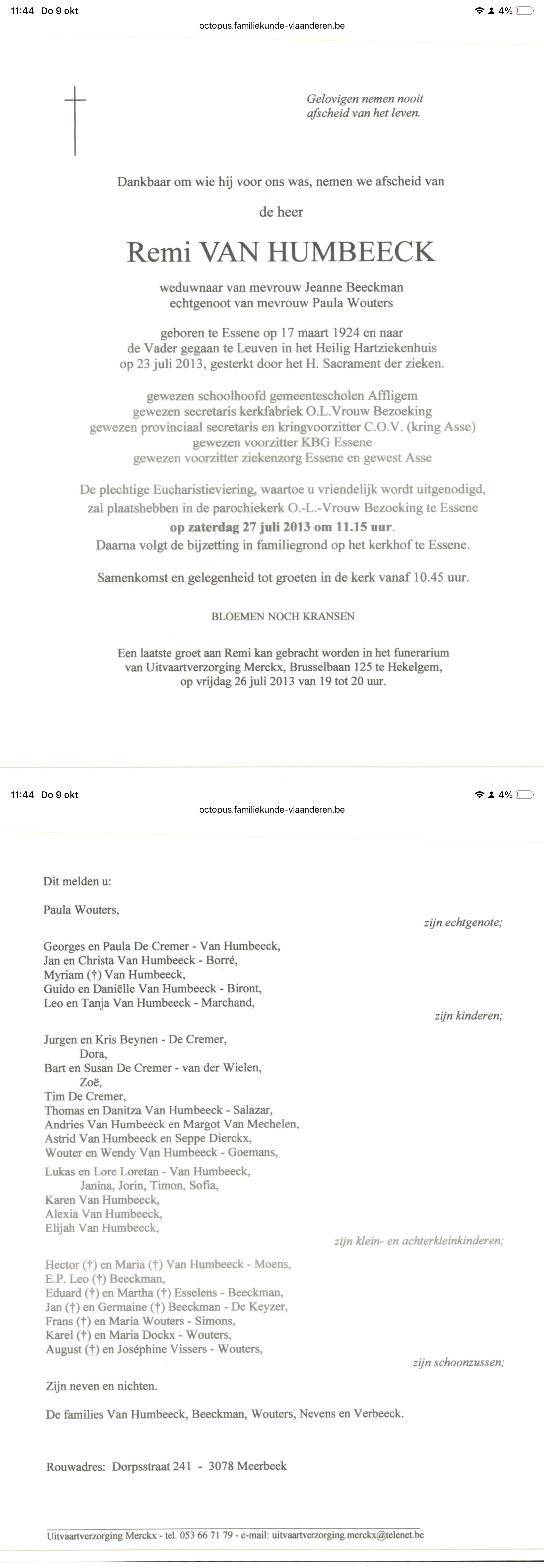 Remi Van Humbeeck overlijden
