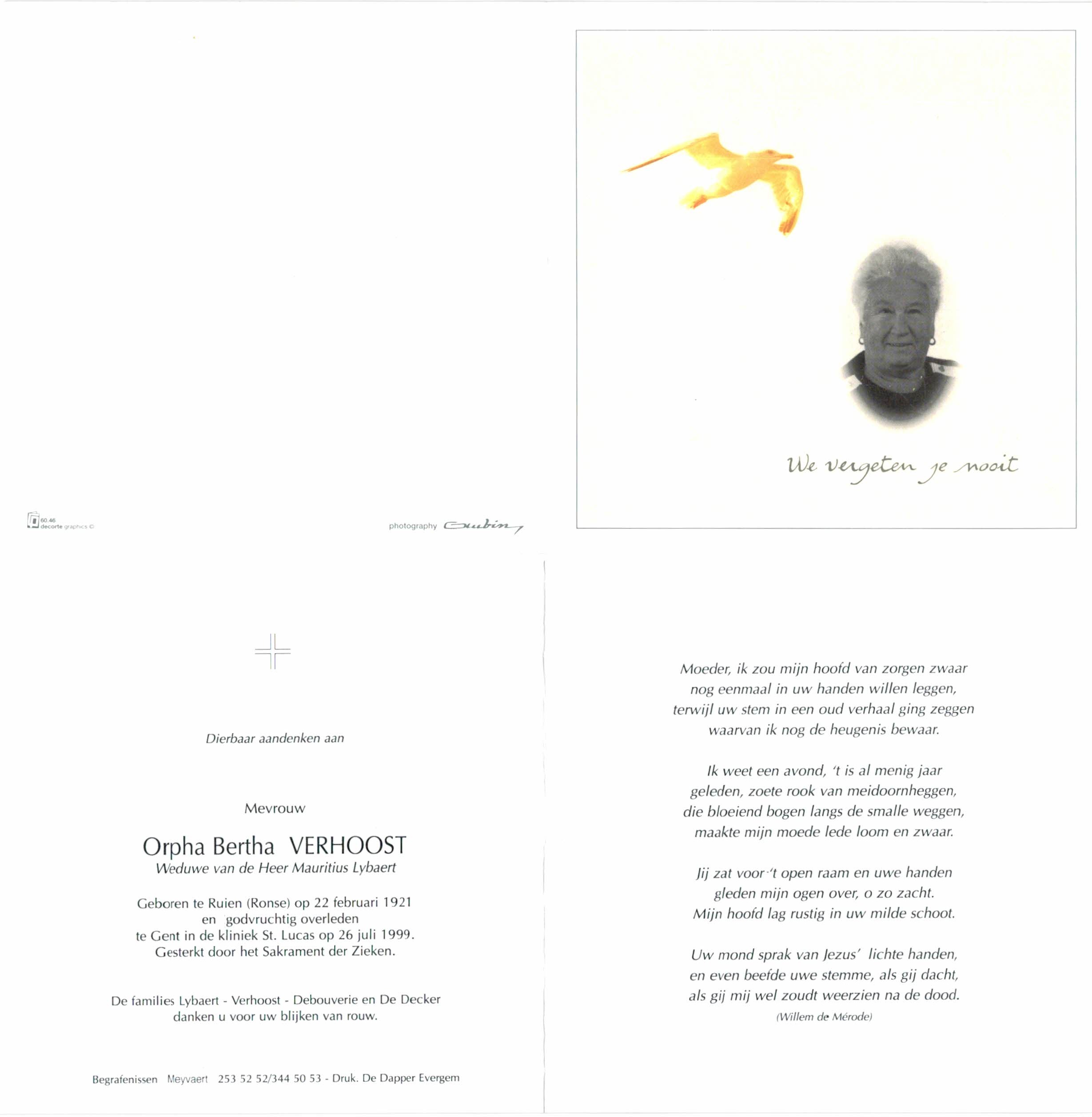 Orpha Bertha Lea Verhoost overlijden
