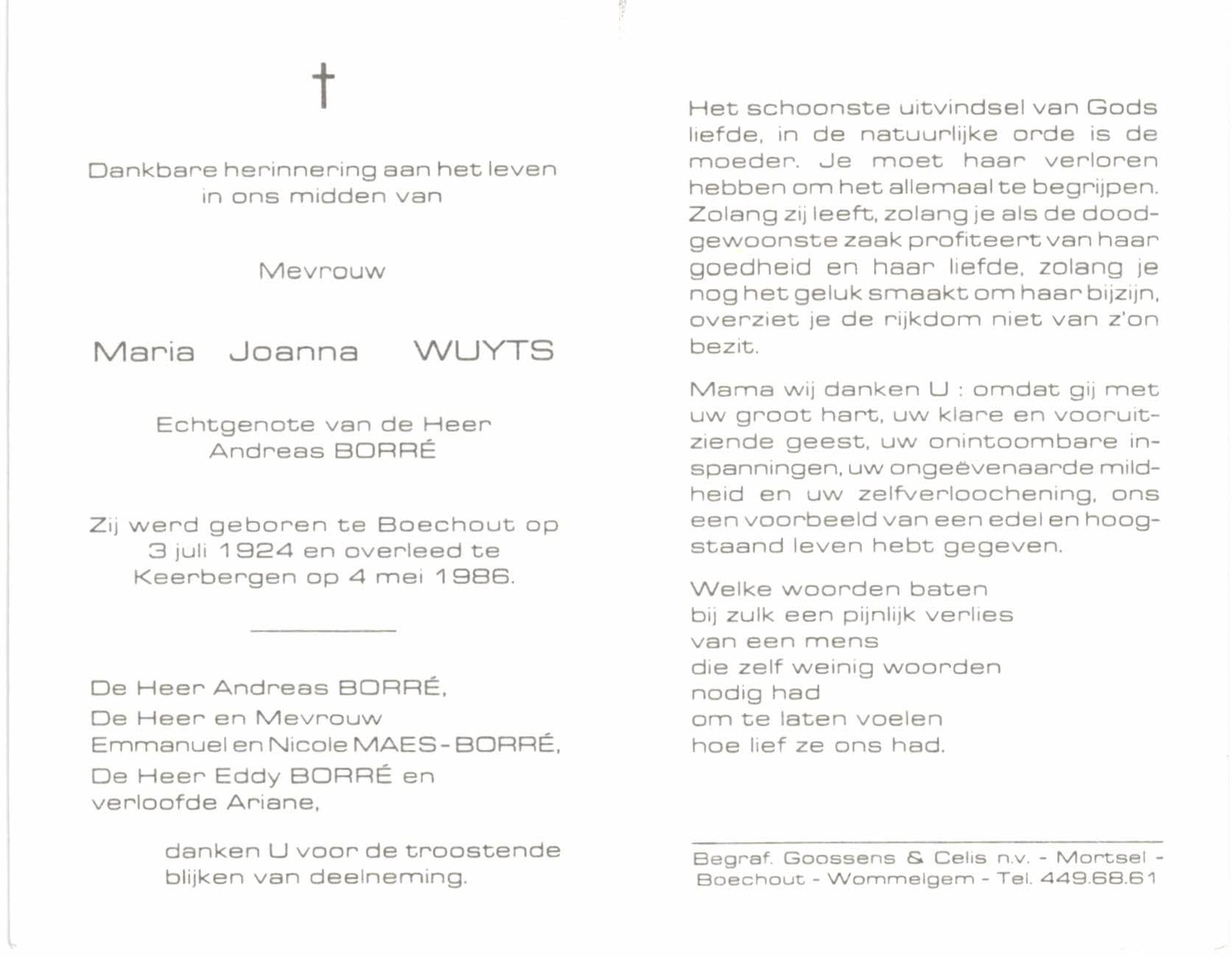 Maria Wuyts begraven